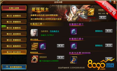 在8090龙之领主中每一次开服的前7天都会有全民冲榜的活动,在这个活动中大家只要达到要求就可以获取大量的奖励,并且这个也是与他人拉开差距的一个重要因素哦,在这个活动中大家想要成为至尊战神吗?那就一起看看怎么获得吧!
