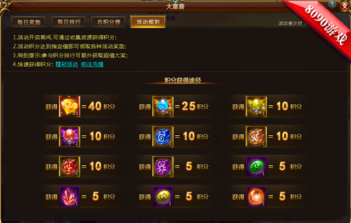 在8090龙之领主中也是有大富翁的玩法哦,这不一个月一次的活动又开始啦,大家对于各种排行榜也是竞争激烈呢,毕竟如果可以获得第一名的话奖励可是可遇不可求的呢,一起加油吧!