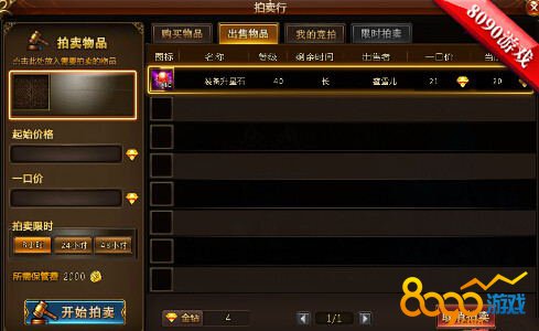 另外,8090龙之领主拍卖行的物品价格中由玩家填写的一口价的价格是不可以低于起始价格的。起始价格就是最低的低价呢,你设定的一口价自然是不可以低于起始价格。若是玩家能够接受这个价格,又是遇上了好东西,