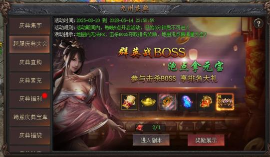 2、「庆典烟花大会」消耗门票,跨服世界BOSS,争夺庆福券;