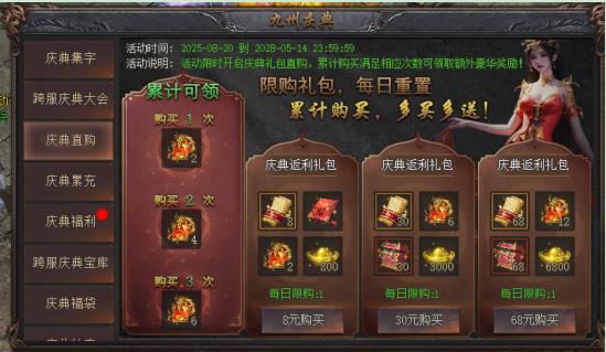 5、「庆典特惠」消耗元宝购买庆典福利礼盒,获取海量资源;