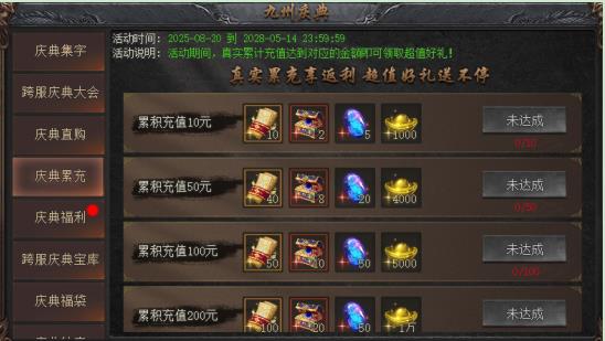8、「庆典累充」真实累充送抽奖次数,返庆典券+绝版幻武、幻甲、称号+养成材料。