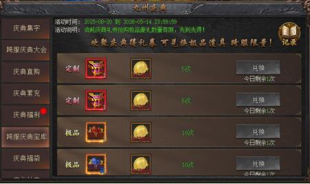 1、「庆典宝库」消耗庆典券,全服兑换指定道具,全服限量;