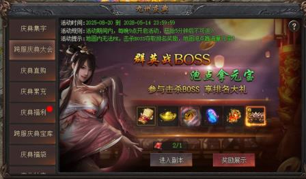 2、「庆典烟花大会」消耗门票,跨服世界BOSS,争夺庆福券;