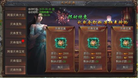 5、「庆典特惠」消耗元宝购买庆典福利礼盒,获取海量资源;