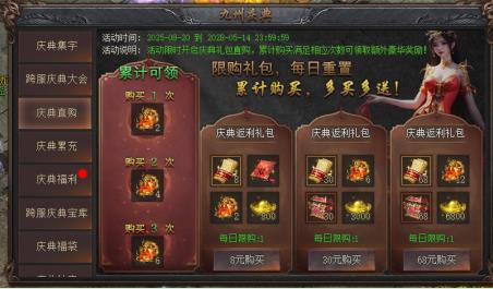 7、「庆典直购」元宝返利+天命石+珍稀道具三重返利;