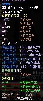 可以使用初级洗炼石就可以洗出将领额外统帅,最高是+7统帅的。这个是相对比较容易洗出的一个额外属性的。可以洗出统帅额外属性的装备部件:目前我只有在饰品中洗出机动,其他的还有洗出过。