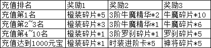 活动说明:开服前3天充值1000可领取奖励,活动结束时根据排行榜名次可领取奖励,条件达成后请尽快领取,跨天后将清除