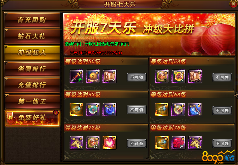 活动时间:开服7天后