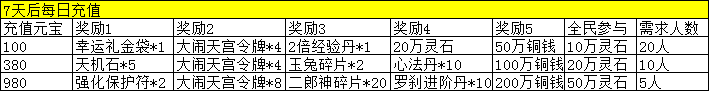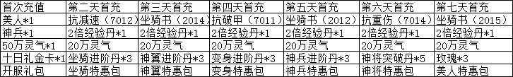 活动规则:开服7天后每天充值达到指定的金额即可领取豪华大礼包,千万不要错过了!
