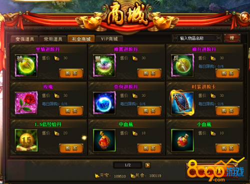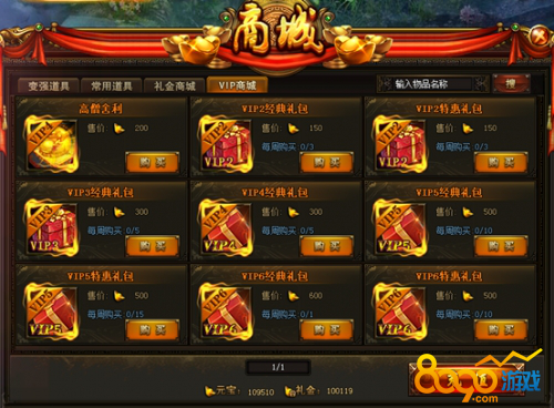 VIP商城页签中提供了一些稀有道具,以及需要VIP等级才能购买的礼包,且有数量限购。