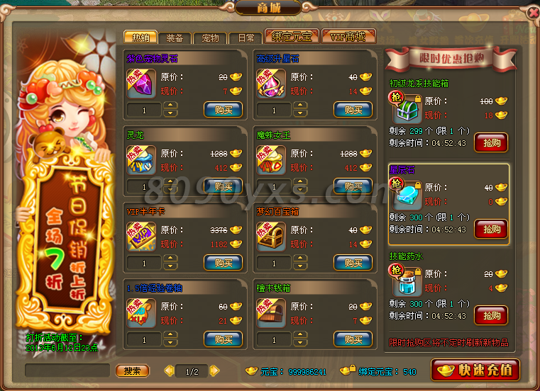 【规则】活动期间(2013年6月8日上午10:00至6月12日晚上23:59),商城所有道具打7折!