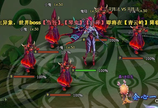 梦幻飞仙第一次组队打50级BOSS最先打的就是鬼母,打了三次才过关。这关比较变态的就是高攻击、高连击、能自愈、能吞噬小怪提高能力并附带群晕技能。要想过关一个厚血、高防御及能加高血量的天师是必不可少的。队伍中也要配合好,攻击高的就专攻,攻击较低的也要盯着队里天师的血量,及时的帮天师补血。后期小怪被吞噬完后鬼母的抗控制非常的强悍,净化及施晕可能都会失败。前期小怪没被吞噬之前就有可以净化、控制、破甲加暴击会比较有用。小怪被吞噬完之后鬼母就会发威,群晕及连击之后就是单晕及连击。每10个回合施放一次群晕。要是天师不幸被晕了且没有足够的血量就基本没过关的可能。所以保住天师及高闪躲,高血量会比较好过关。