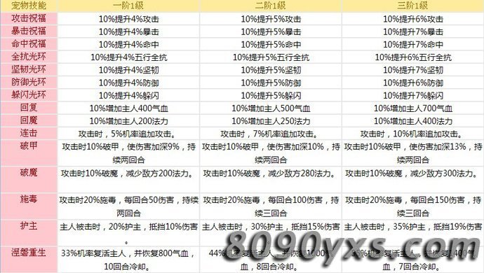 梦幻飞仙宠物:先从每个技能入手,分析一下这个技能对于PK活动中的意义。