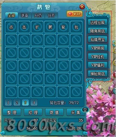 6. 【仙境寻宝】(背包的右边栏)搞一堆宝石来合成高级宝石(在【锻造—物品合成】里面),顺便把强化用的材料搞到了,还能意外出一些别的东西。敏捷、攻击、命中、暴击、气血、躲闪,这些宝石按照顺序依次打上去,其他看情况。法力石头可以合着玩儿,也可以扔掉,绝对不要打。低于3级的宝石,冲榜还是不要打了。