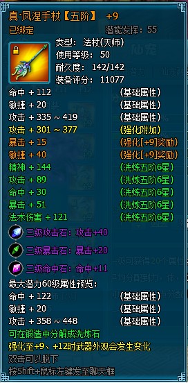 8. 洗练:必然批量洗练,因为批量可以保留洗练前的洗练属性。千万不要痴迷于装备评分,因为评分是根据星等来的,10星法力这种属性,评分很高,但是几乎没用,直接等于你战斗的时候少了整整一条属性,很亏。攻击、命中、暴击这种属性普遍适用(命中优先于暴击,被闪避过你就知道了),法术伤害很极品,因为法术伤害意味着只要攻击命中,不可以被任何方式减少,比如+1000法术伤害,那每次攻击伤害必定+1000.对天师来说,精神非常非常重要,同等星级的精神要比法伤好。【XXX技能+1】这种属性,如果不是你职业最最重要的技能,就等于少一条属性,还是扔掉吧。所以总的来说,洗练要追求实用。