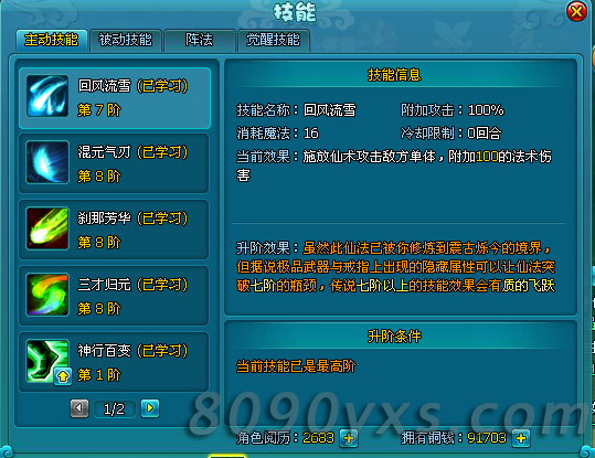 相信大家对于本职业的主要技能都是不遗余力的提升到了很高的等级的。那么对于两个公用技能“回风流雪”和“混元气刃”呢?因为用得少,所以可能等级都很低吧。如果是这样,那么我又不得不说,你失误了。