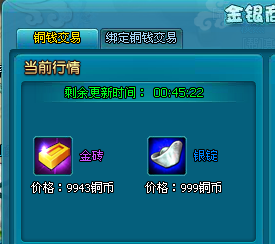 非绑定铜只能用金砖和银锭兑换,比例还有浮动。我看到最高时,金砖1:9998,银锭1:1000。每隔一段时间会更新兑换比例,有耐心的朋友可以等合适的价再换。