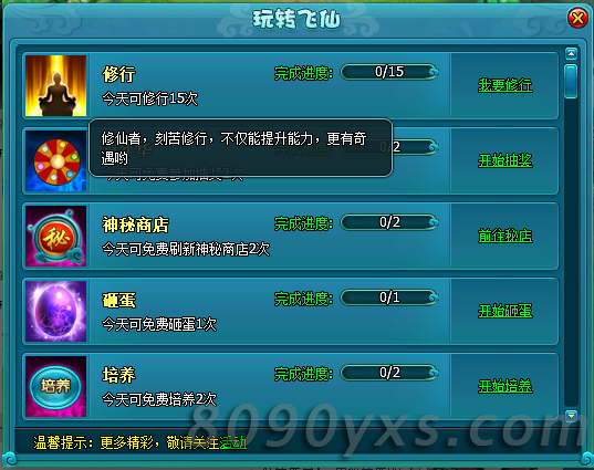 4.每天完成15次修行任务,可获得终极修行礼包一个;