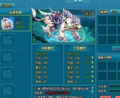 坐骑经验值满时即可升级,每升1级都会增长一定属性。坐骑属性将直接附加到人物能力。坐骑等级最高不能超过人物等级。