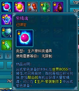 VIP每天可以去挂机地图击杀一次专属BOSS,它的实力比同等级的世界boss要弱很多,但也不是所有人可以单刷成功的,推荐组队,如果拥有很强大的战力,可以尝试单刷。有机率掉落紫精魂,但机率不是非常高。
