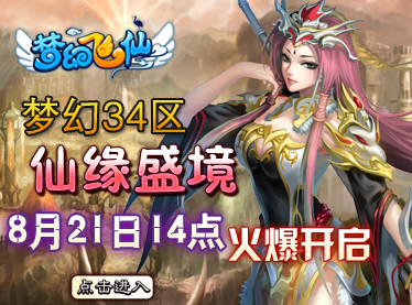 一起来玩8090梦幻飞仙吧,8090梦幻飞仙梦幻34区“仙缘盛境”将于2012年8月21日14点火热开启!丰富的开区活动,精彩的游戏内容,都等着您来参与!赶紧加入8090梦幻飞仙,一起打造一个属于我们共同的美轮美奂的玄幻世界!
