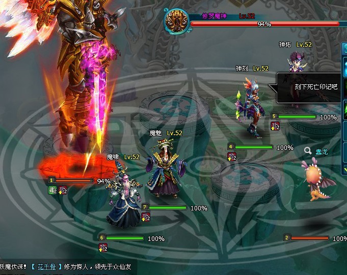 第一、第二回合BOSS召唤小怪、可以随便打,等召唤完小怪后,全部群杀魔魅,强力输出。 杀完魔魅后接着强力输出打魔啸,接着是全力输出神佑。大家也知道神佑的回血3.6W,只要你们把神佑打死、便算过关了。 杀死神佑后,相信大多数玩家都是杀神刻对吧?其实这是错误的,个人认为杀死神佑后就全力输出主BOSS。因为,如果还有小怪在的话主BOSS是不会动的。况且神刻的输出也少,完全可以直接杀BOSS