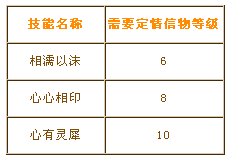 夫妻技能会在定情信物升到6级、8级、10级时自动获得,具体等级对应如下: