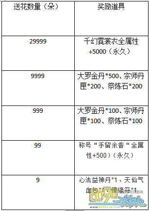 【活动描述】活动期间,开放鲜花榜系统,同时赠送鲜花也可以领取额外好礼。
