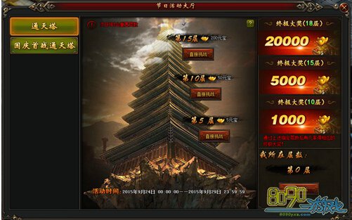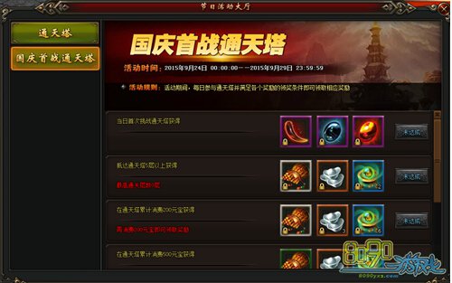 【活动描述】国庆期间,满足条件即可领取一份通天塔奖励
