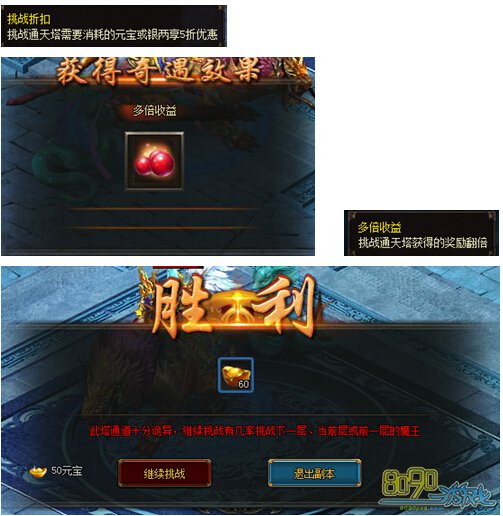 1. 通天塔分为18层,玩家达到活动等级需求即可免费进入,每挑战过一关后 需要消耗银两或元宝