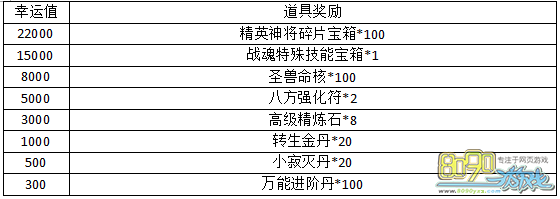2、参与一次抽奖可获得10点幸运值,当幸运值达到对应要求玩家即可领取特殊大奖(仅限一次)。