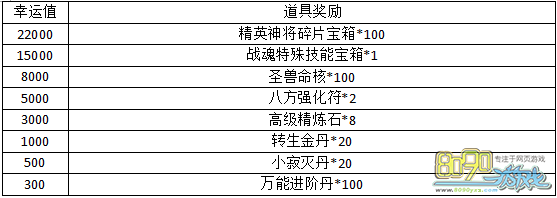 2、参与一次抽奖可获得10点幸运值,当幸运值达到对应要求玩家即可领取特殊大奖(仅限一次)。