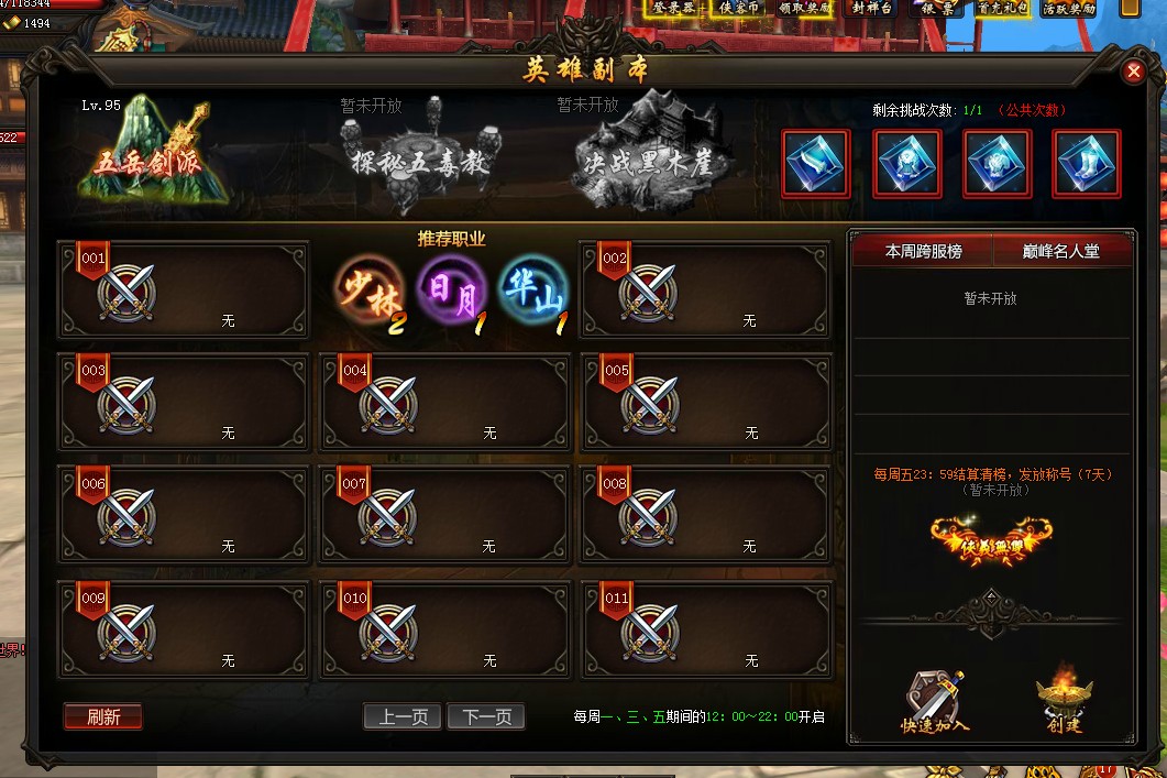 2.英雄副本的开放时间为每周一、三、五的12时至22时;