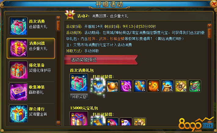 搜索"8090网页游戏"一、首次消费,送超值大礼
