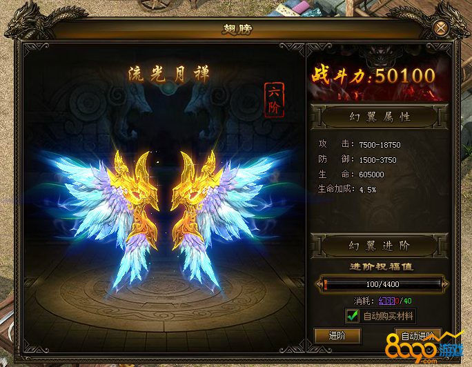 翅膀系统是一个非常强大的系统,升级的时候有着大量属性获得。而且外形会不停的变化,变的越来越酷炫。