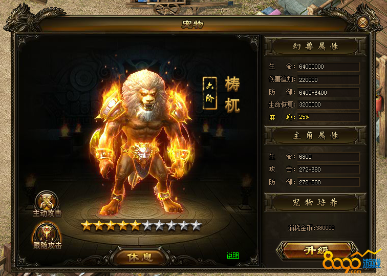 宠物系统升级全部靠金币就可以了,是一个非常良心的系统。宠物能够对抗一切BOSS,只要你有时间,没有宠物打不死的BOSS。宠物升级到满级,还可以百分百麻痹BOSS。