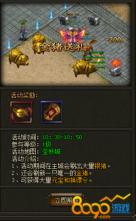 在灭神游戏中,金猪送礼是一个纯福利活动