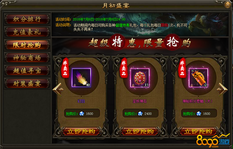 2. 活动期间内,神秘商场每日刷新各种珍稀道具,打折出售限量抢购。