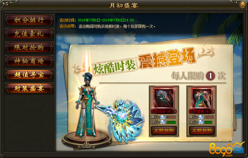 搜索"8090网页游戏"夏至狂欢活动(开服时间超过7天开启)