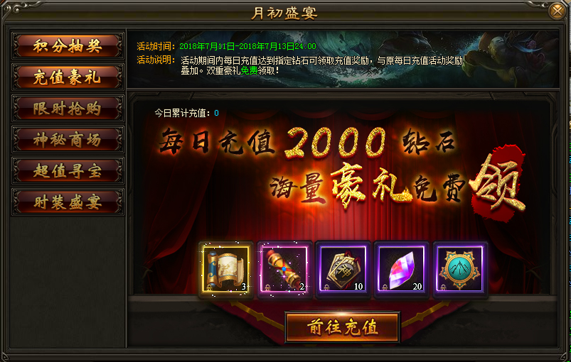2. 活动期间内,每日充值达指定钻石数额,即可领取充值奖励,可原每日充值奖励叠加领取。