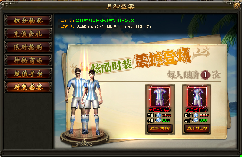 2. 活动期间内,玩家可购买绝版活动时装,每个玩家限购一次
