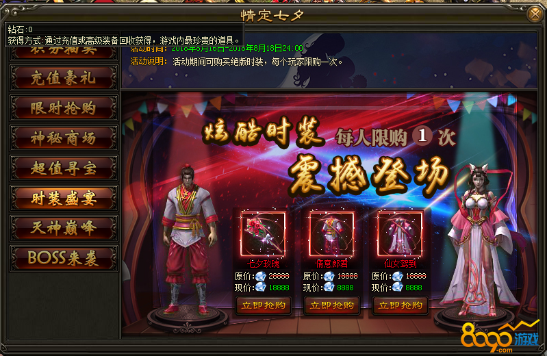 2. 活动期间内,玩家可购买绝版活动时装,每个玩家限购一次