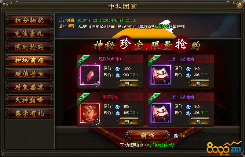 2. 活动期间内,神秘商场每日刷新各种珍稀道具,打折出售限量抢购。