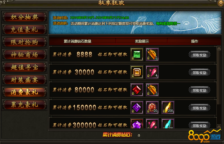 3. 有两档奖励可领取:2000钻石、20000钻石。每档都有丰厚豪礼免费领取。
