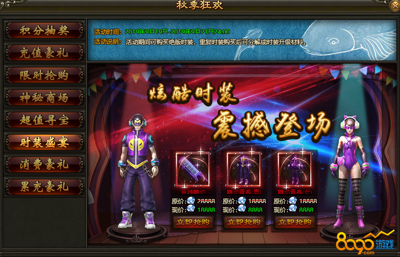 搜索"8090网页游戏"活动时间:2019年9月19日00:00—2019年9月21日24:00