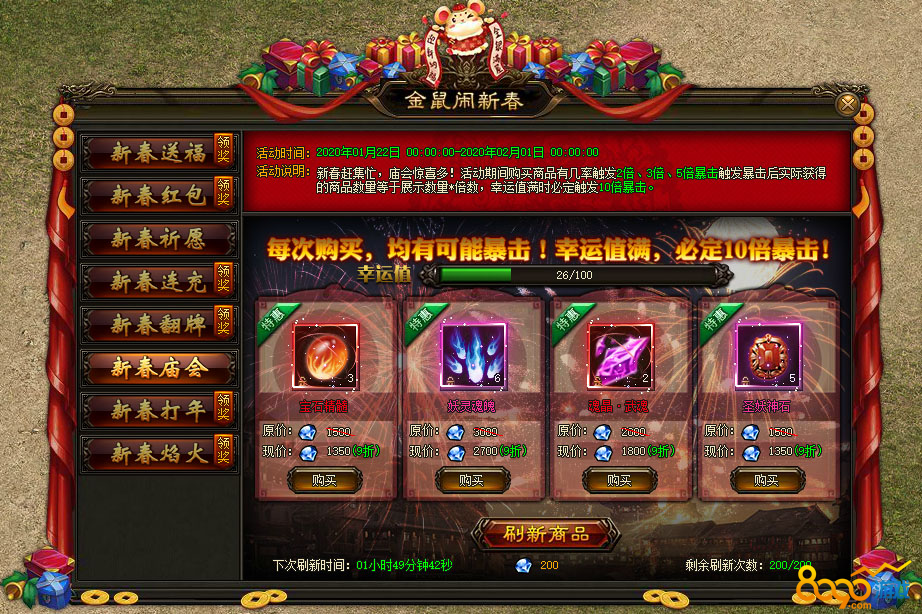 活动时间:2020年1月22日00:00 → 2020年2月1日00:00,共10天