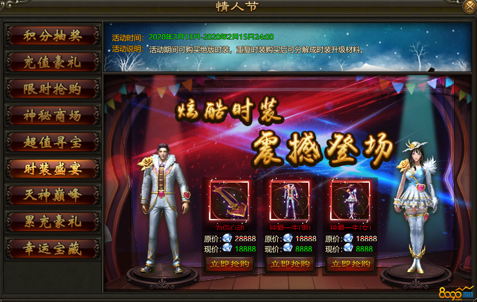 2.活动期间内,玩家可购买绝版活动时装,每个玩家限购一次