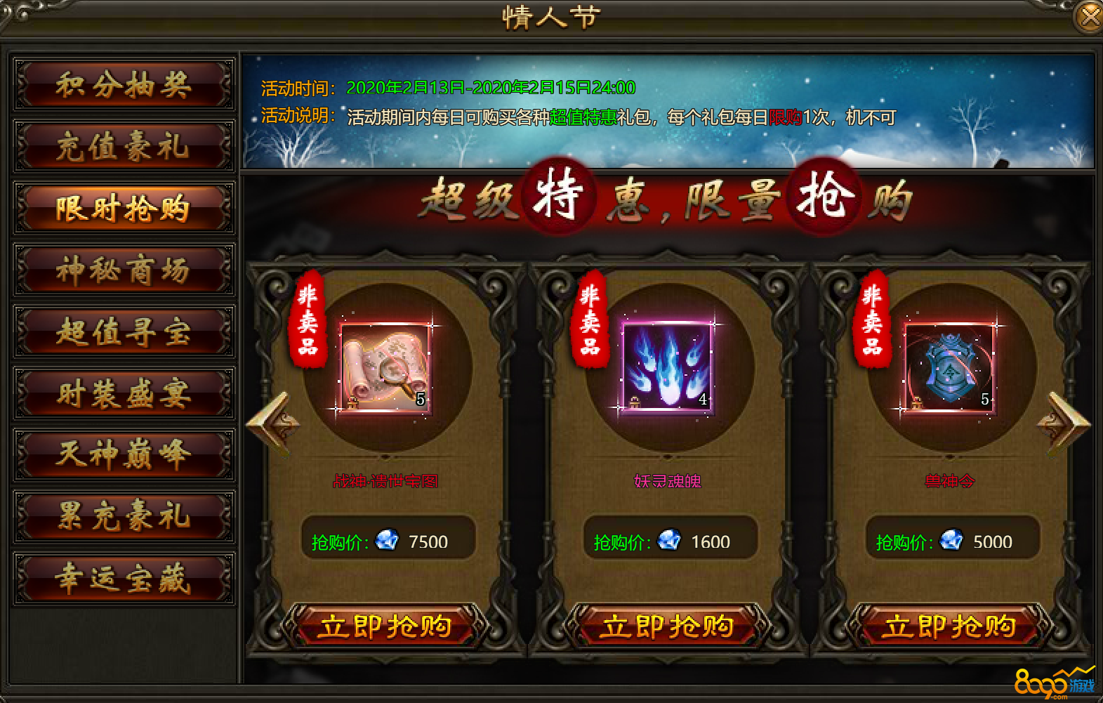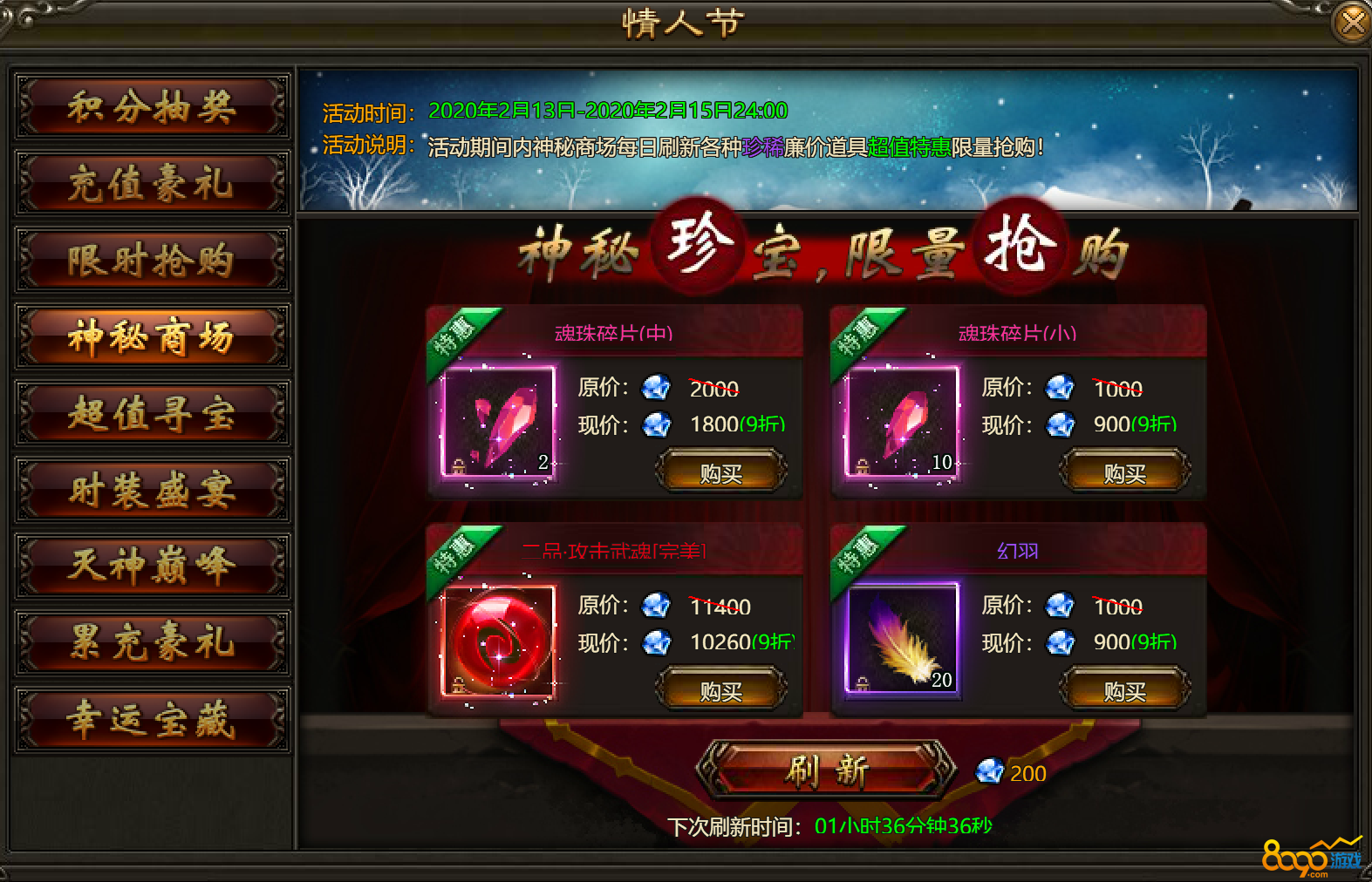 2.活动期间内,神秘商场每日刷新各种珍稀道具,打折出售限量抢购。