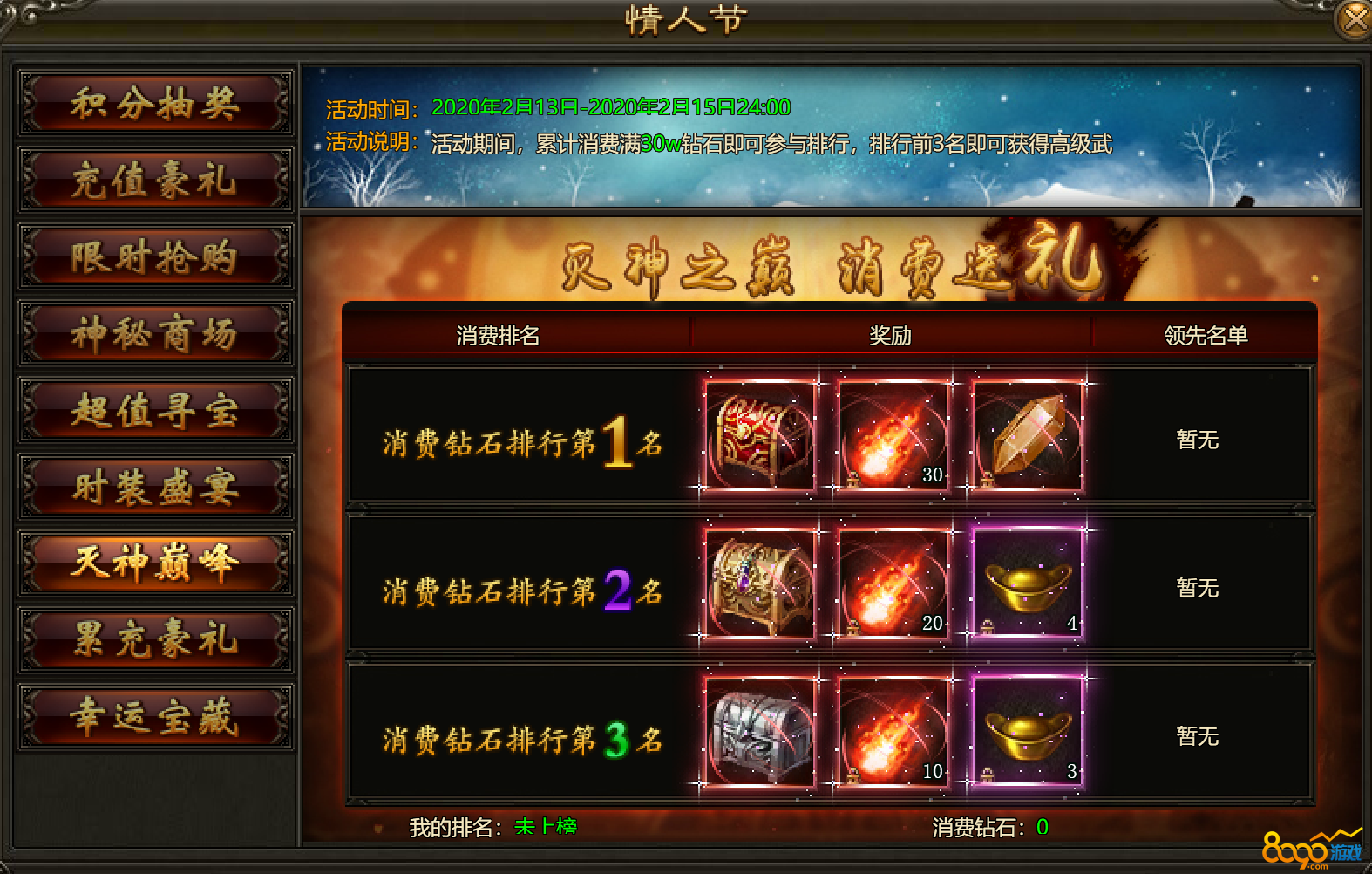 3.有两档奖励可领取:2000钻石、20000钻石。每档都有丰厚豪礼免费领取。